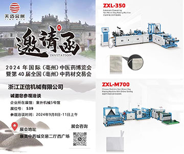 通知????安徽亳州中醫(yī)藥博覽會(huì)!我司將現(xiàn)場(chǎng)展示自動(dòng)穿繩茶包袋!高速線縫煎藥袋兩款機(jī)型!誠邀新老客戶現(xiàn)場(chǎng)參觀洽談!